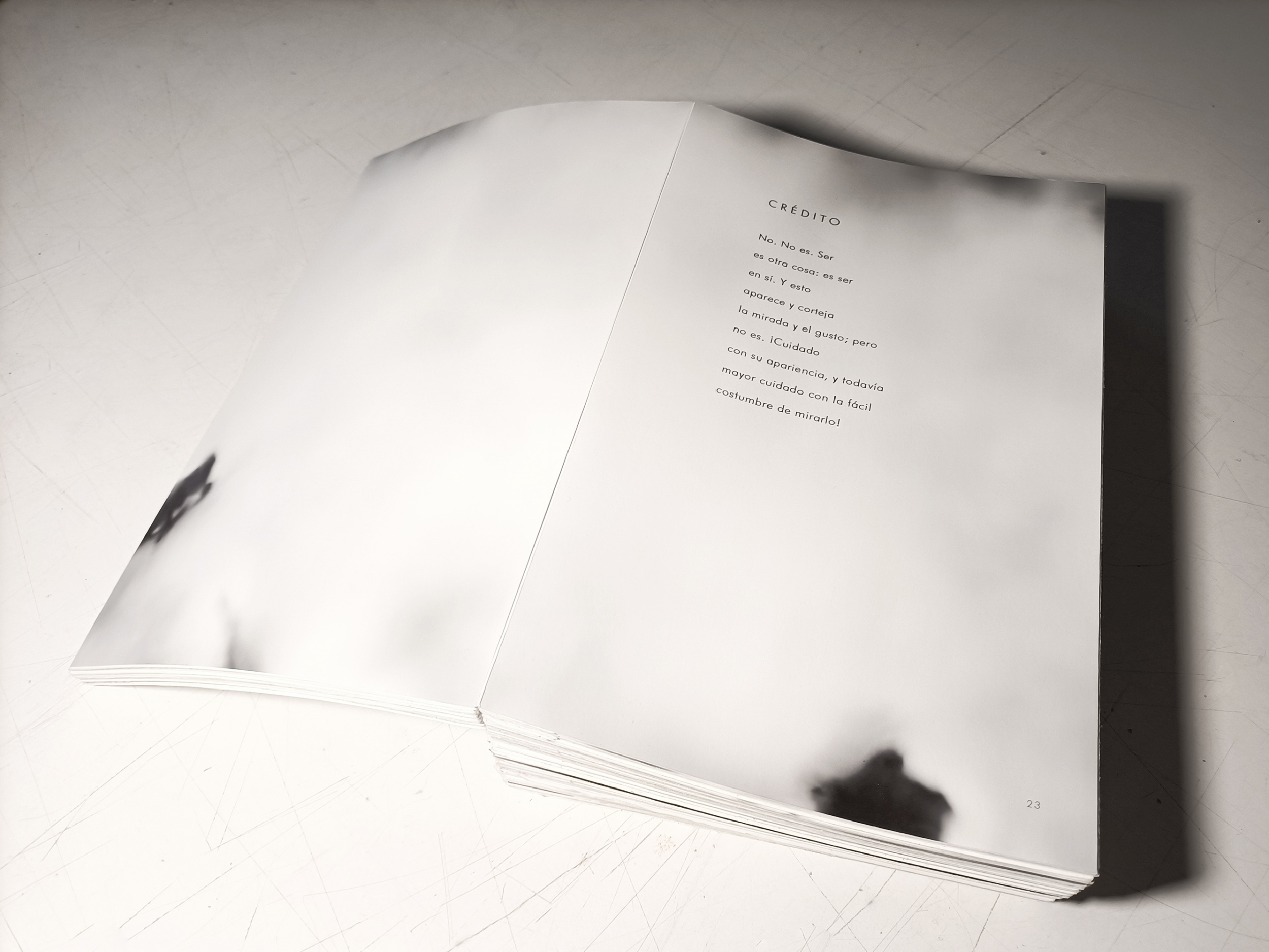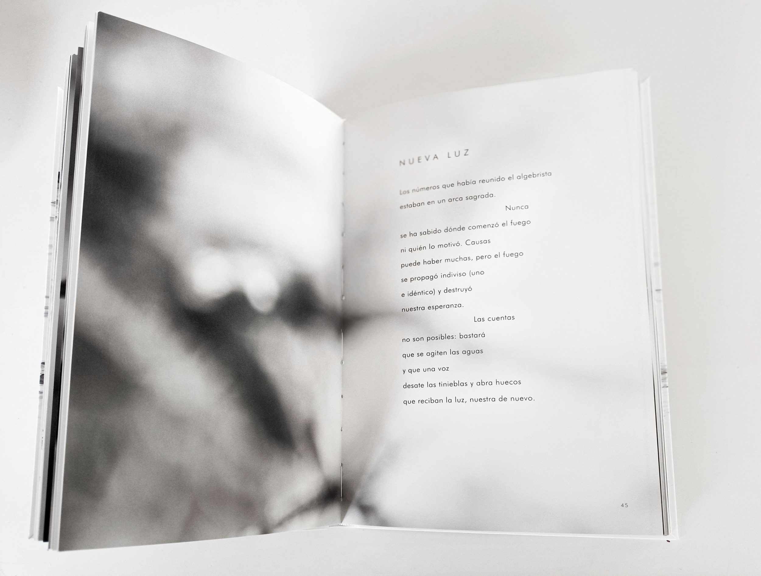 Este libro no es una mera yuxtaposición de disciplinas, sino una obra donde ambas se potencian mutuamente, donde la luz y la sombra, el silencio y la voz, construyen metáforas que nos invitan a sumergirnos en la inmensidad de lo inefable. Ignacio Llamas, con su poética visual depurada, nos sitúa en escenarios de ausencia y recogimiento, donde la luz se convierte en presencia y la sombra en testimonio. Por su parte, Jesús Cobo, a través de su palabra precisa y evocadora, nos guía en un tránsito de profundidad, donde el verbo se vuelve luz que nombra y da sentido.